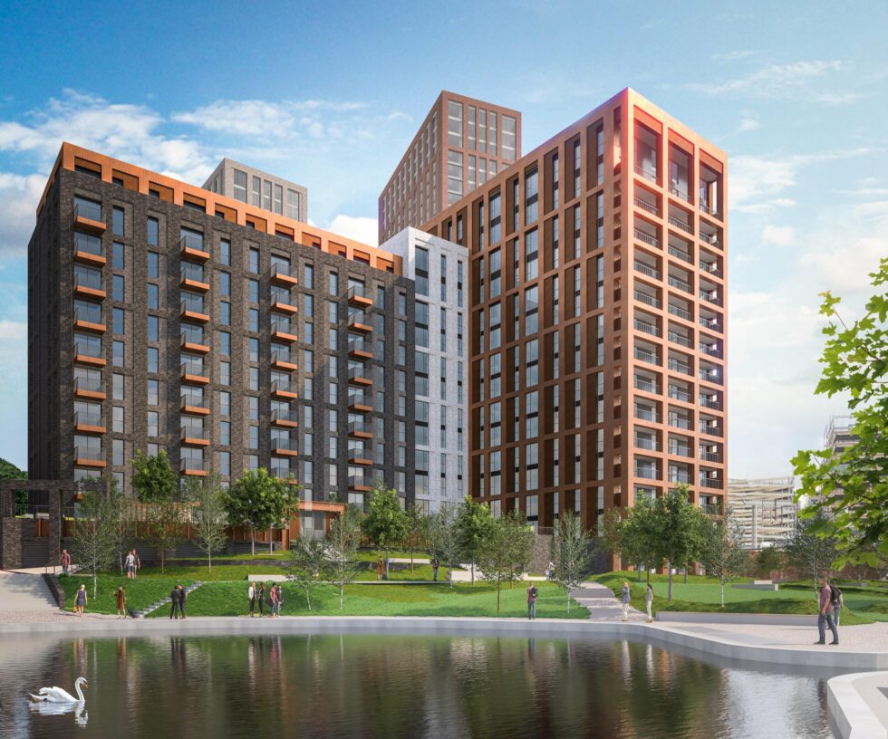 The first reserved matters consent includes 659 residential apartments within two blocks, one to be part 28-storeys and part 10-storeys linked by a podium garden and the other part 32-storeys and part 11-storeys, alongside ground and first floor commercial space of circa 18,000 sq ft.